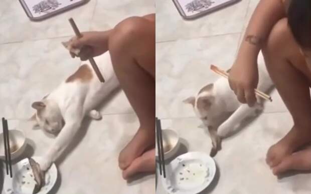 Некоторые коты — очень хитроумные воришки, и герой этого ролика, опубликованного в интернет-сообществе Ptencoff, тому подтверждение. Сообразительный котяра притворился спящим, чтобы незаметно для хозяев похитить рыбку с тарелки, которая стояла неподалеку. Как только пушистому удалось схватить добычу, он сразу же унес ее, чтобы съесть подальше от людских глаз.
