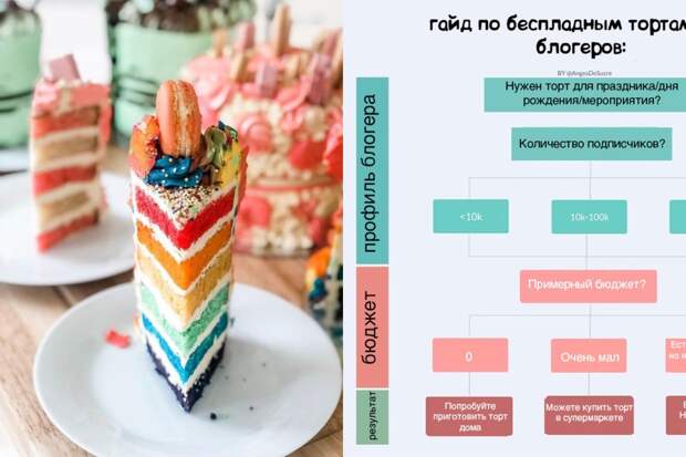 Некоторые блогеры считают, что пара тысяч подписчиков в соцсетях делает их королями мира, которые могут получить все, что захотят, за отметку в сторис. Однако пекарь из Лондона Решми Беннет совершенно не разделяет подобную точку зрения. Владелица кондитерской Anges de Sucre настолько устала от сотен сообщений в директе от любителей халявы, что придумала специальный гайд, который отправляет каждому написавшему ей блогеру.