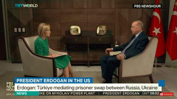 Беседуя в кулуарах Генассамблеи ООН с журналистами американского телевидения PBS, Реджеп Тайип Эрдоган, обсудил взаимоотношения Анкары и Вашингтона, отдельно остановившись на посреднической роли Турции в Российско-украинском конфликте.