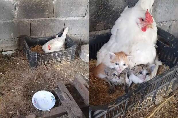 Он отправился их проверить и неожиданно осознал, что звук идет из-под одной несушки. Оказалось, что курица-защитница по имени Ли взяла котят под свою опеку после того, как их мама скончалась (позже фермер с сыном нашли тело кошки недалеко от пруда). Читать далее
