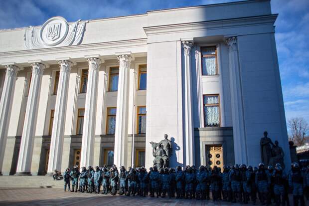 Акция протеста проходит также у стен парламента. Участники акции под названием «Депутаты! Работать!» требуют продолжить работу парламента летом с целью рассмотрения важных законопроектов. Активисты установили на площади перед Радой шезлонги и зонтики. На этих шезлонгах лежат участники акции, которые изображают отдыхающих депутатов.