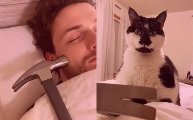 «Вероятность того, что домашняя кошка убьет человека, крайне мала, но никогда не равна нулю», — подумал котофей из видео и решил напомнить об этом хозяину, который забыл вовремя наполнить миску кормом. Меховой наглец стал грозить мирно спящему человеку молотком, и его совсем не смущало такое поведение.