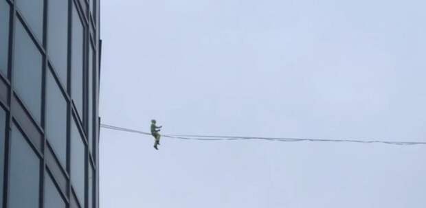 Неизвестный экстремал из Санкт-Петербурга пересек пропасть между двумя многоэтажными домами по натянутому между ними канату. Захватывающее дух зрелище попало на запись камер мобильных телефонов очевидцев.