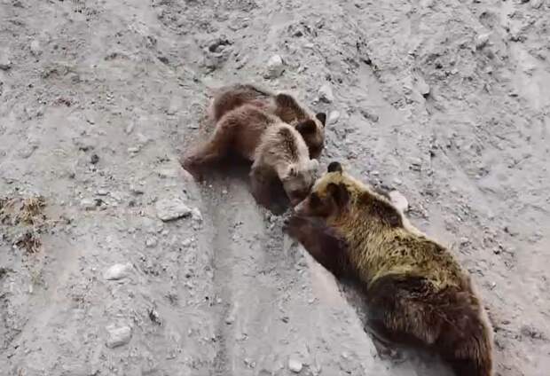 Самопожертвование медведицы во время опасного спуска тронуло сердца людей.