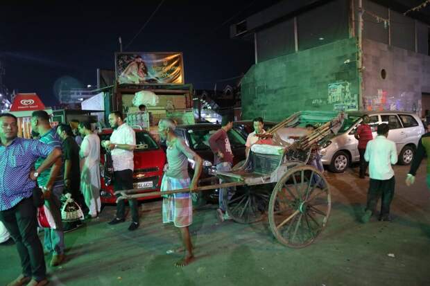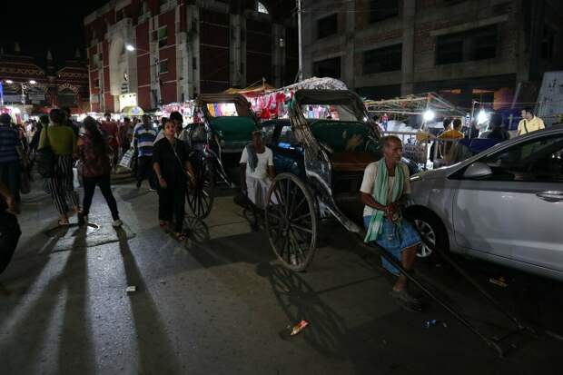 Что сказать, действительно тяжёлая доля рикш. Скорость невысокая, нагрузки огромные, иногда приходится по 2 человека тащить так. Так мне жалко стало этого бенгальца, что когда он по прибытию стал пытаться разводить меня на деньги, у него это получилось. Поэтому вопрос сколько стоит удовольствие — я досконально не мог изучить. Естественно, что иностранцу они всегда завышенную цену назовут. А так, это где-то примерно доллар за километр.